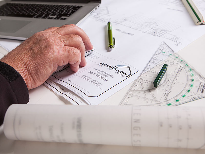 Sämtliche Planungsleistungen vom Entwurf bis zum Bauantrag und die Ausführungsplanung sowie die Bauleitung werden von dem 1986 gegründeten Planungs- und Ingenieurbüro Dipl.-Ing. Thomas Weismüller erbracht. Die Arbeiten auf der Baustelle werden an leistungsfähige, solide, einheimische Firmen vergeben und von uns überwacht.